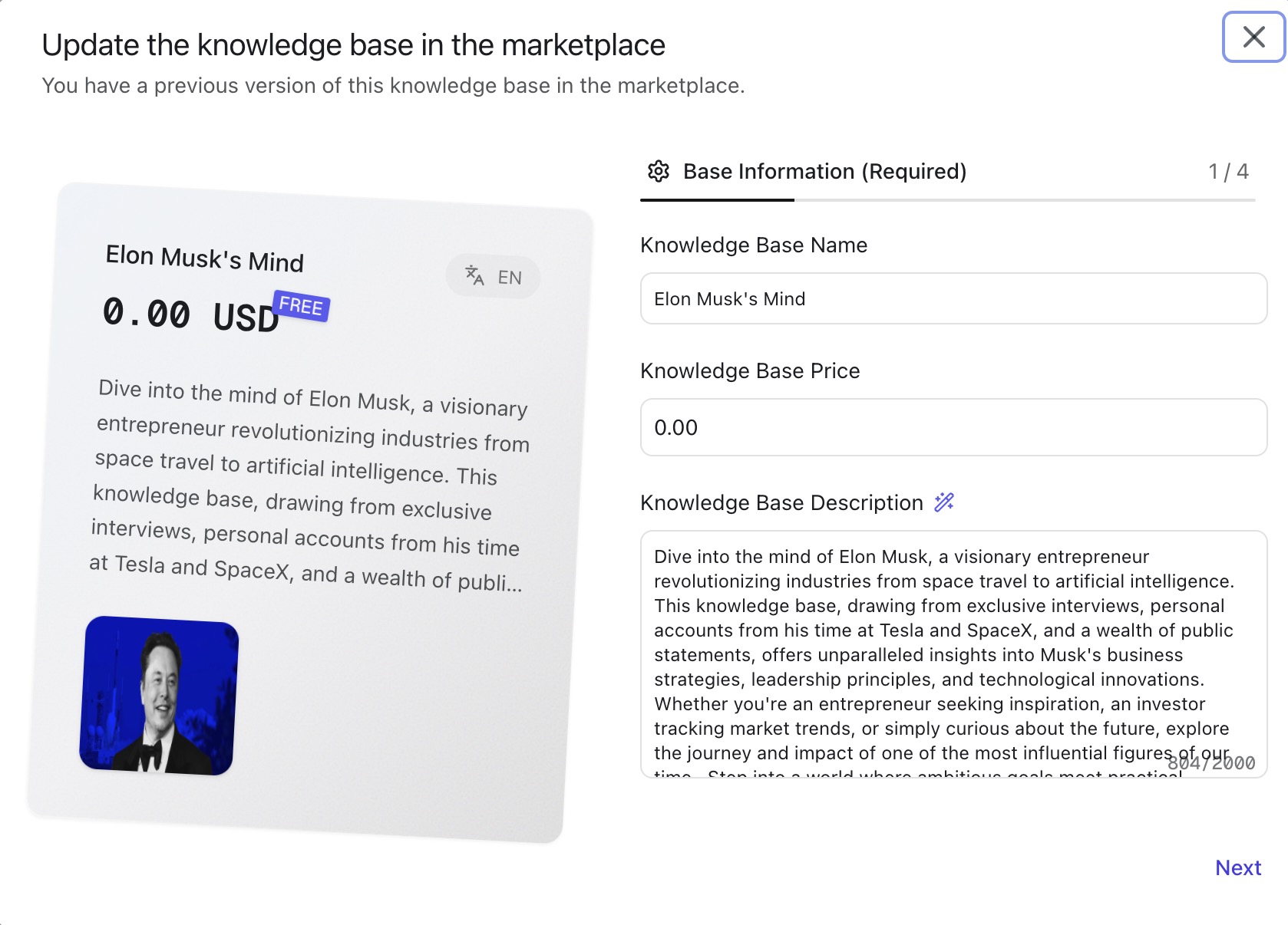 **覚えておいてください**：説明は簡潔かつ明確にし、ユーザーが短時間でこのナレッジベースが自分に適しているかどうかを判断できるようにしてください。また、説明内容の真実性を確保し、過度な約束は避けてください。