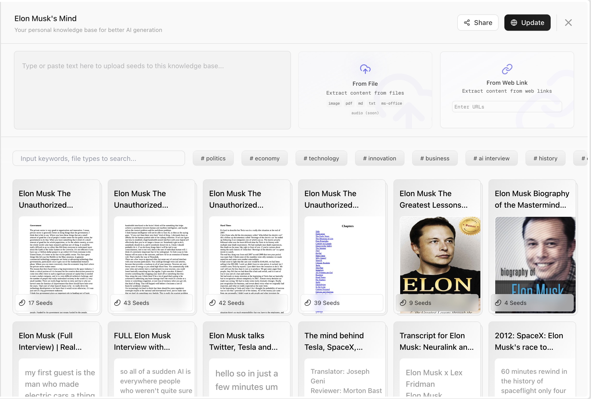 2. **コンテンツキュレーション（Curation）**：この情報過多の時代において、インターネットは既に十分な素材と質の高いコンテンツを提供しています。課題は情報不足ではなく、洞察力があり価値のあるコンテンツを選別し整理することにあります。インターネット上の質の高いコンテンツを特定のテーマに沿って整理・収集し、flowithの知識ベースにアップロードすることで、コンテンツの収益化を開始することができます。