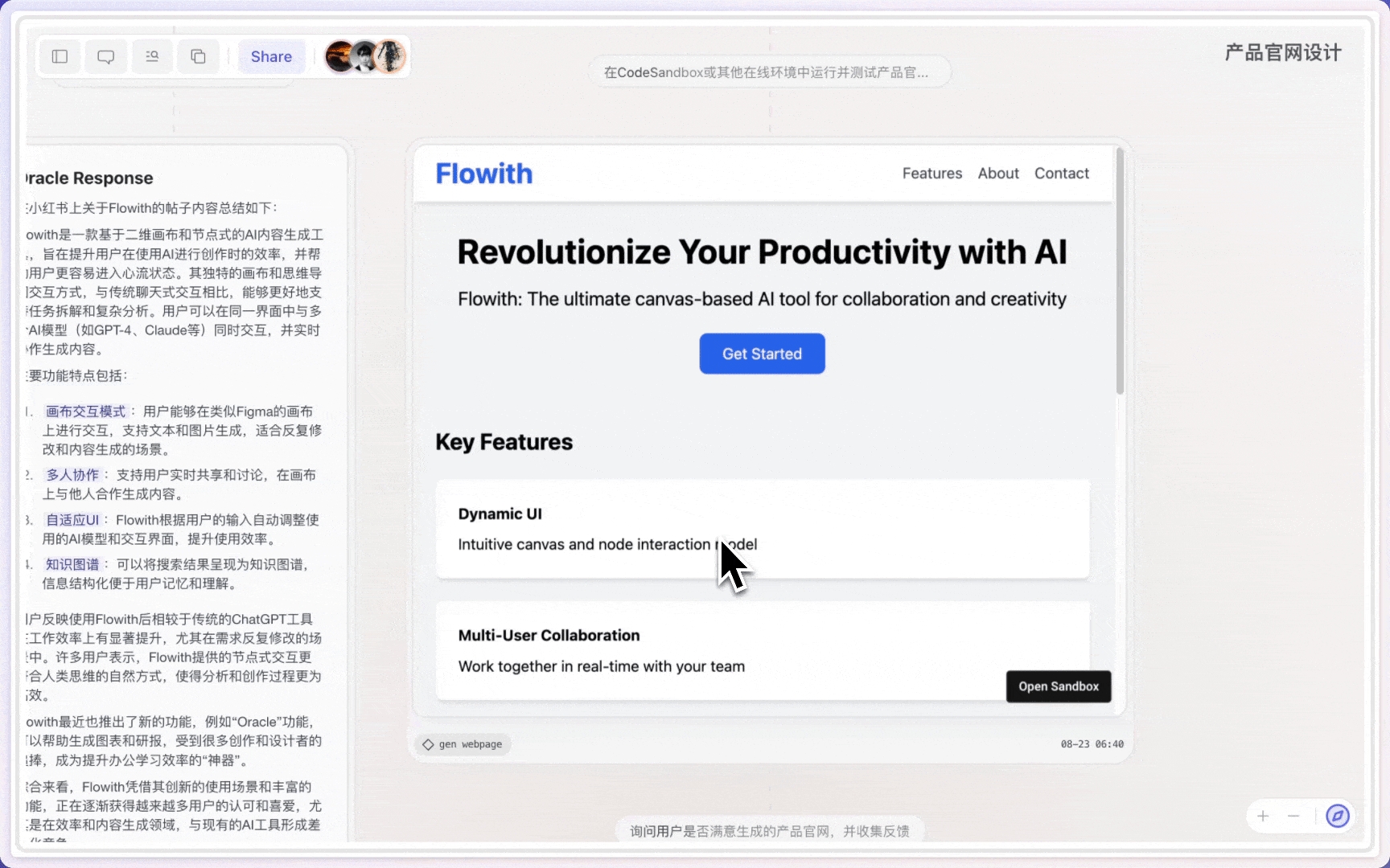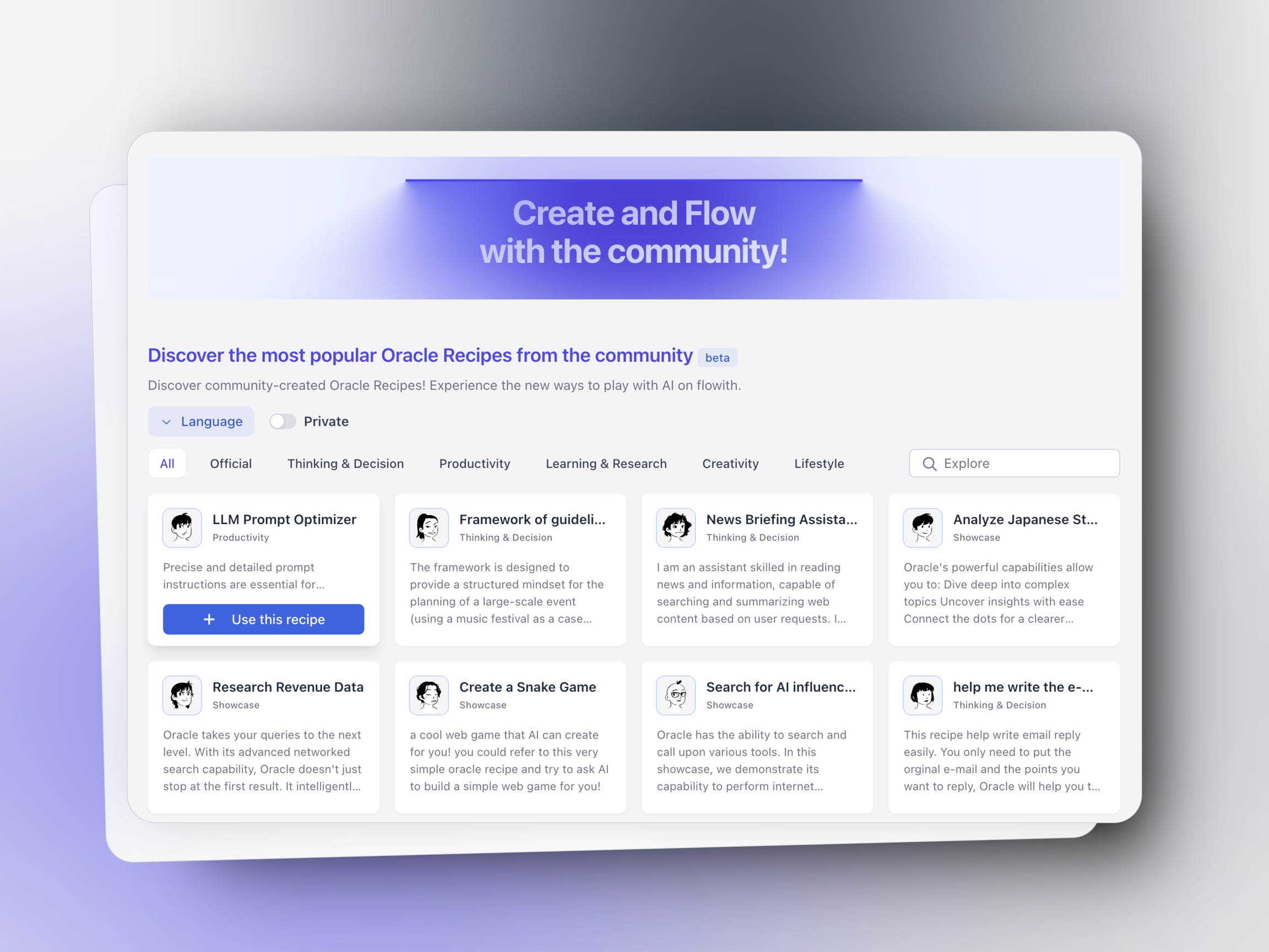 製品や現象について調査し、レポートを作成する必要がある場合、Oracle は優れた選択肢です。Oracleは様々なプラットフォームにわたってより包括的な検索を行うだけでなく、Webページや PowerPoint プレゼンテーションを生成する機能も活用します。これにより、必要な情報をより効果的に提示することができます。